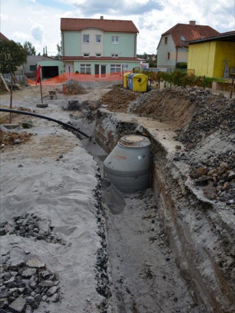 Výstavba kanalizace a vodovodu z ulice Komenského k MŠ a bytovým domům v Telči